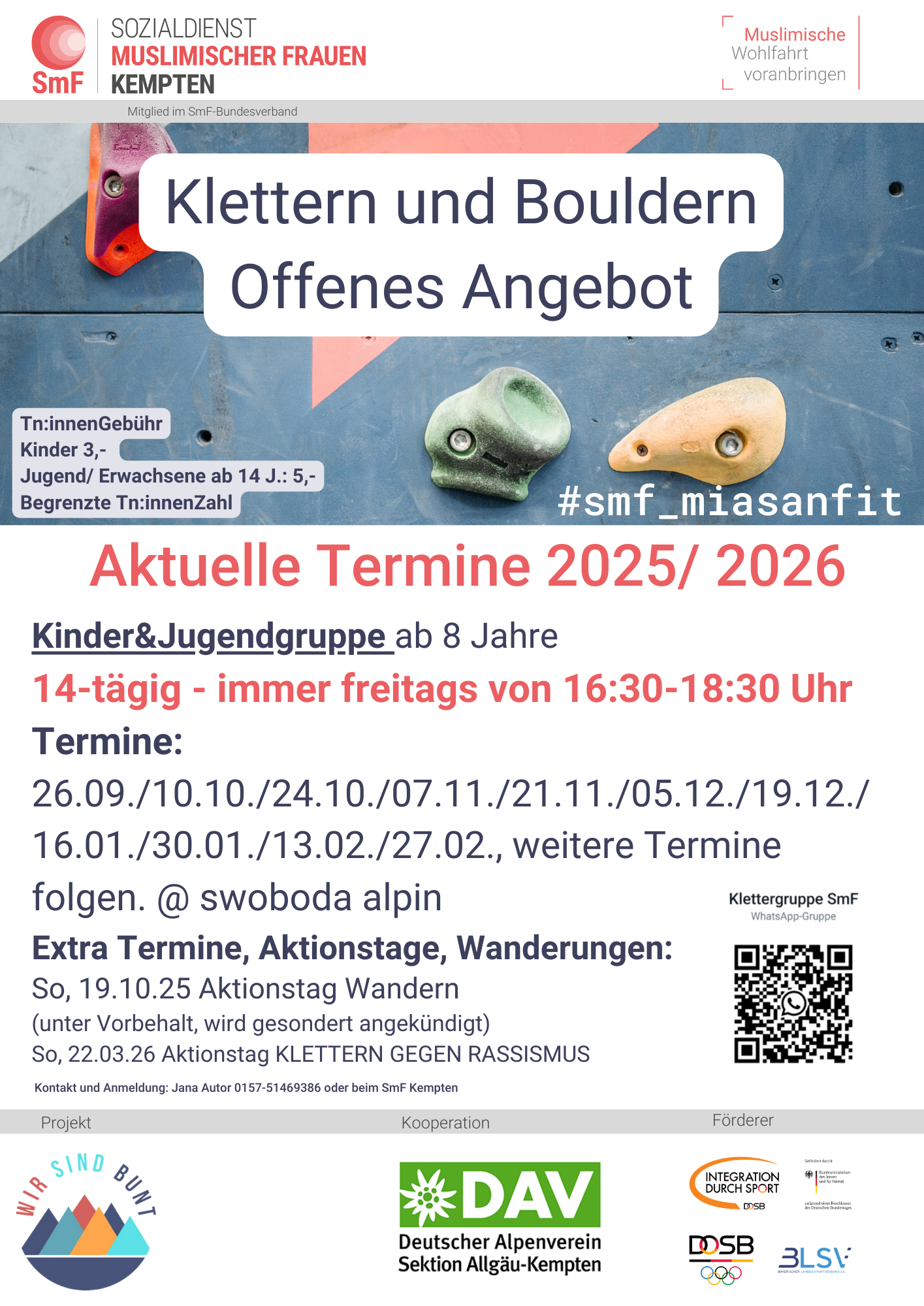 Sozialdienst muslimischer Frauen Kempten - Offenes Angebot Klettern und Bouldern